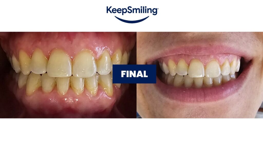 Tras 30 placas alineadoras KeepSmiling en 2 etapas de tratamiento durante 15 meses, se logró: