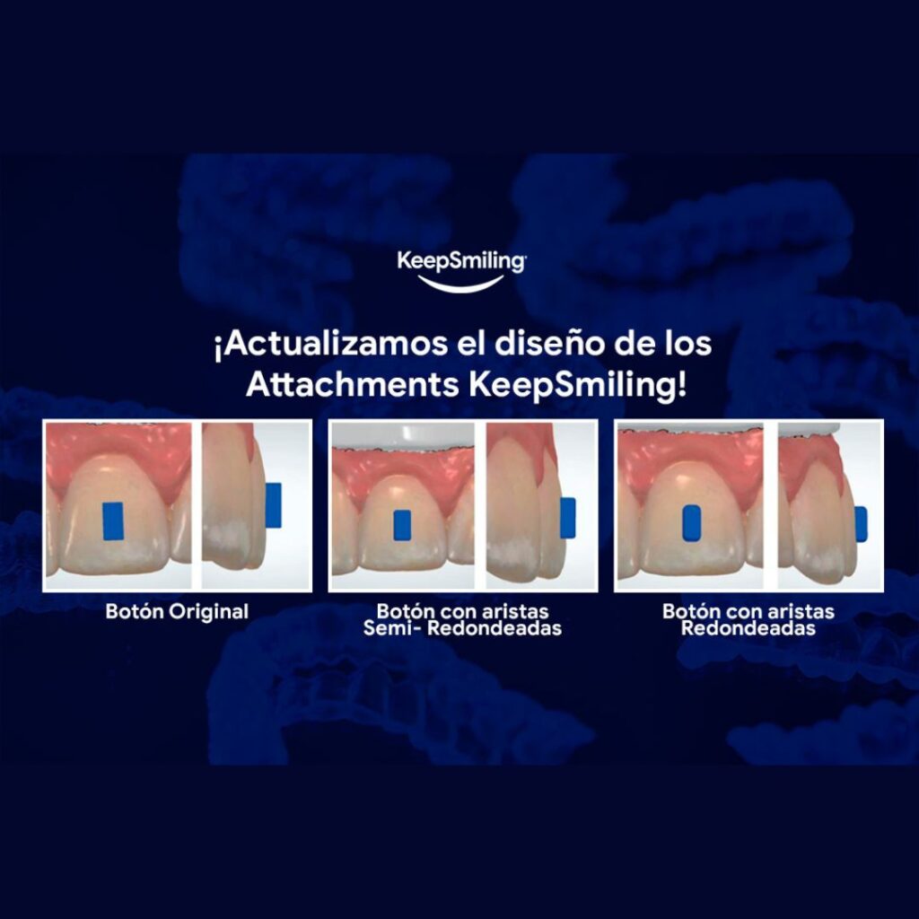 El rediseño de Attachments fue un proyecto que se desarrolló entre las áreas de “Mejora continua”, “Diseño 3D” y “Ortodoncia” para continuar optimizando la forma y funcionalidad de los alineadores KeepSmiling.